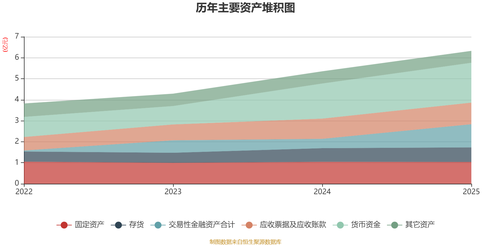 资产重大变化方面,截至2025年末,公司交易性金融资产合计较上年末增加148.2%,占公司总资产比重上升9.12个百分点;固定资产较上年末减少0.71%,占公司总资产比重下降3.11个百分点;应收票据及应收账款较上年末增加6.88%,占公司总资产比重下降1.72个百分点;货币资金较上年末增加13.54%,占公司总资产比重下降1.23个百分点。