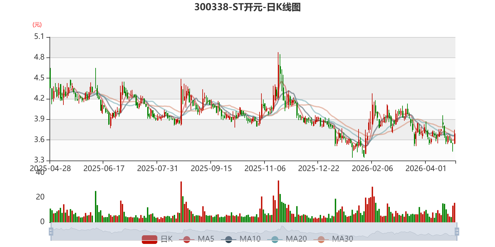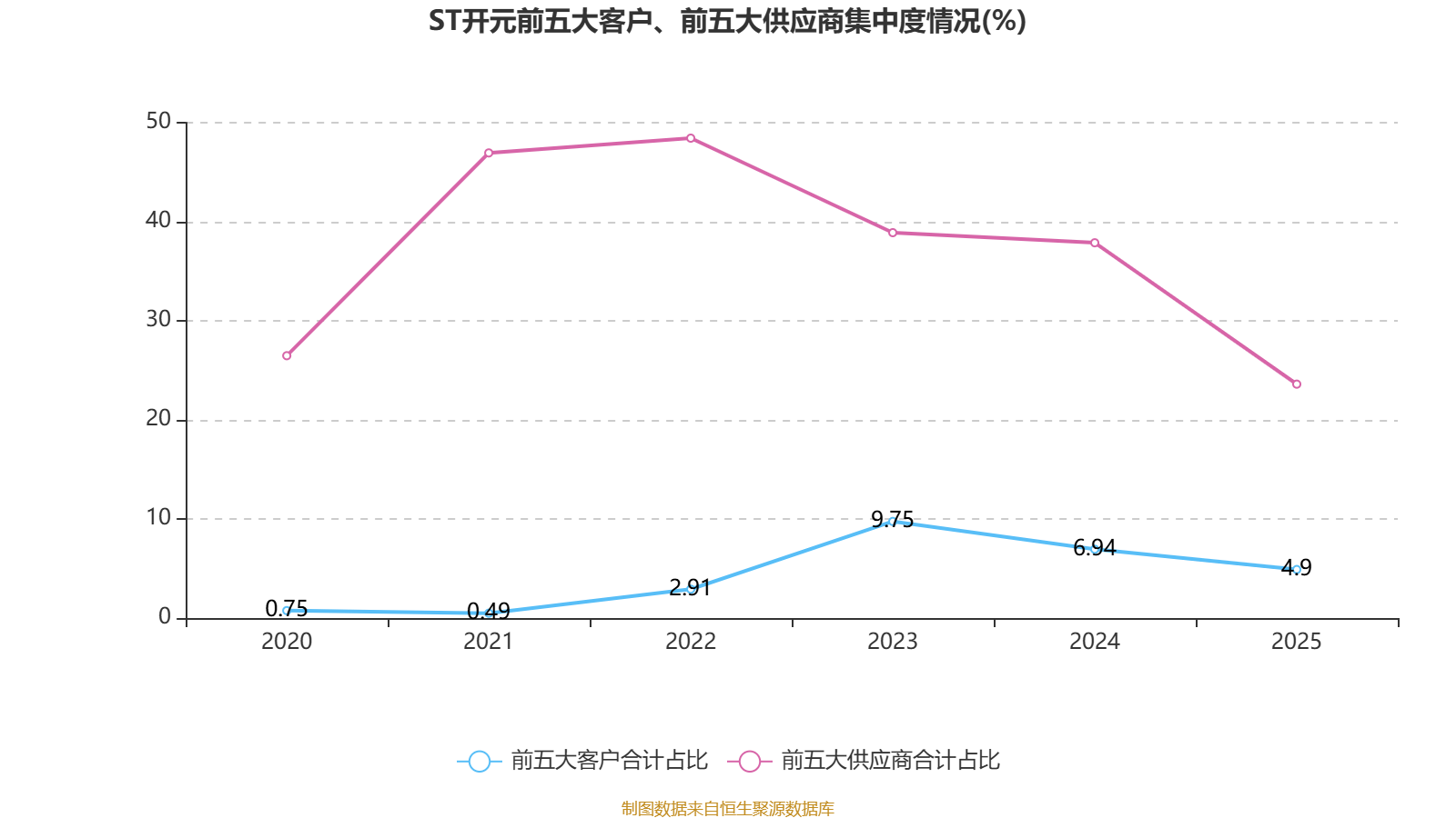 中证智能财讯 ST开元(300338)4月28日披露2025年年度报告。2025年,公司实现营业总收入1.36亿元,同比下降20.38%;归母净利润亏损1.38亿元,上年同期亏损1.41亿元;扣非净利润亏损1.19亿元,上年同期亏损1.6亿元;经营活动产生的现金流量净额为-1.38亿元,上年同期为-364.33万元;报告期内,ST开元基本每股收益为-0.34元。
