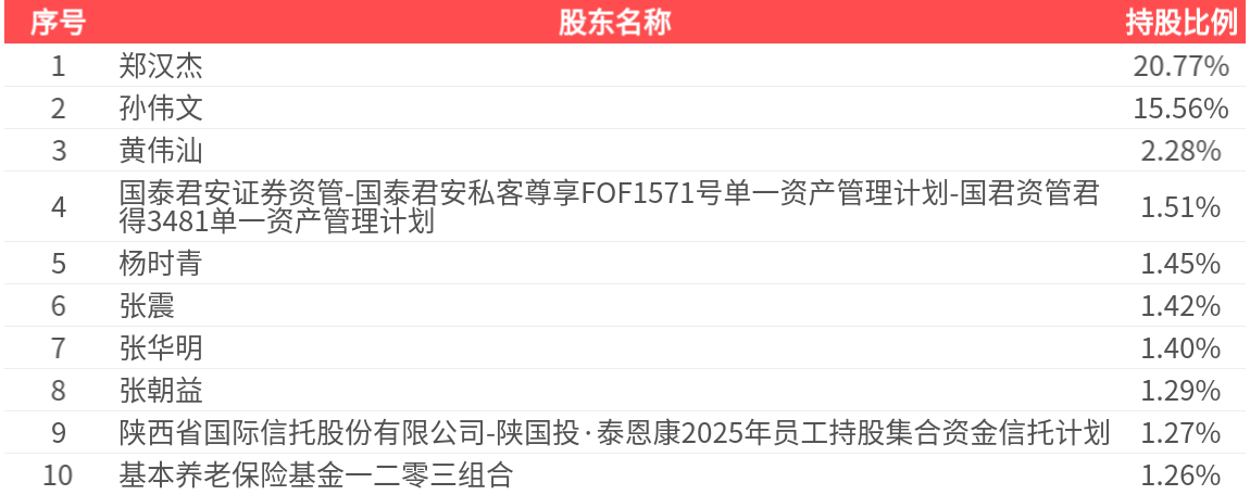 公司股东户数为1.31万户,前十大股东持股数量为2.05亿股,占总股本比例为48.21%,前十大股东持股情况如下: