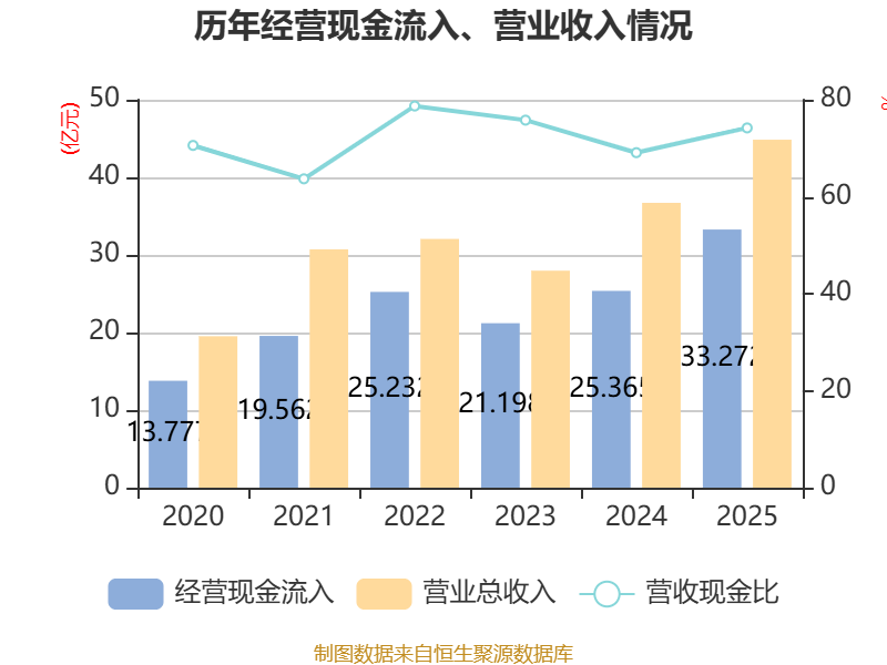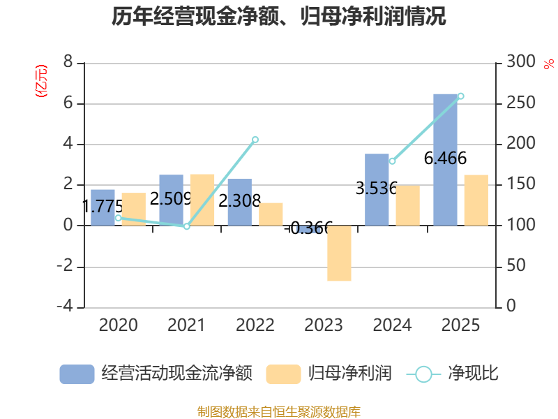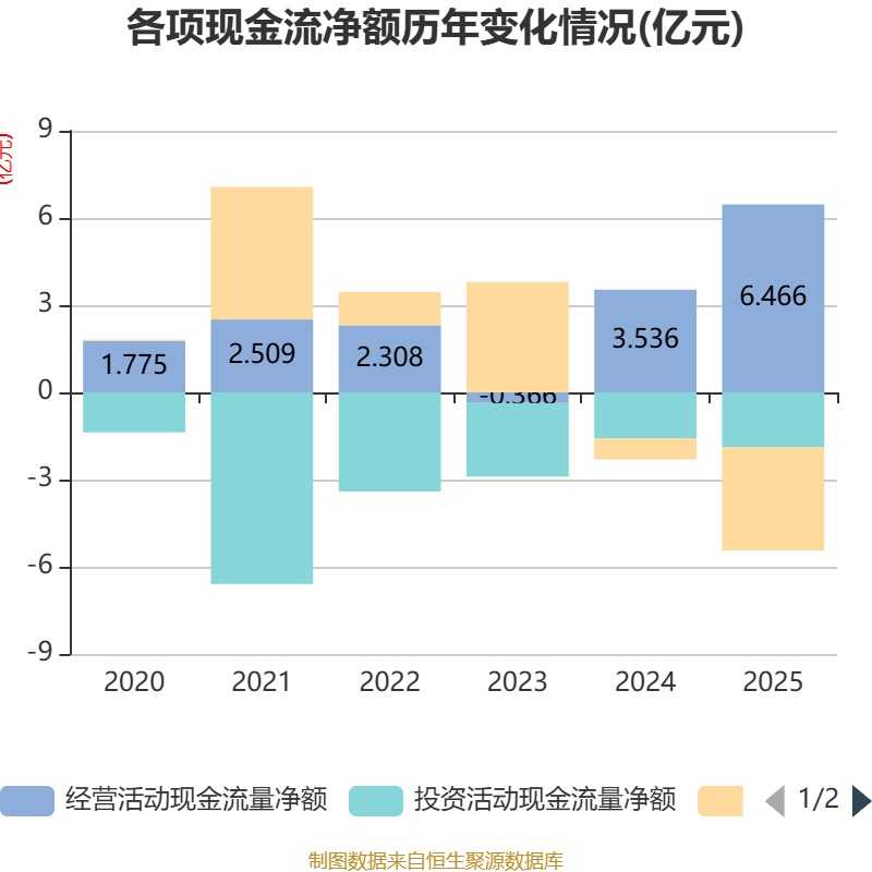 截至2025年,公司经营活动现金流净额为6.47亿元,同比增长82.86%;筹资活动现金流净额-3.55亿元,同比减少2.83亿元;投资活动现金流净额-1.89亿元,上年同期为-1.59亿元。