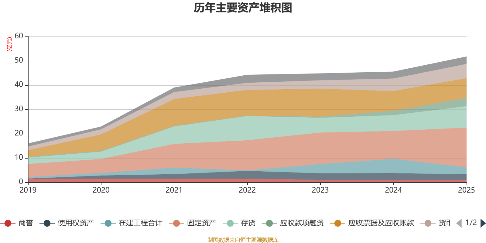 资产重大变化方面,截至2025年末,公司在建工程合计较上年末减少50.17%,占公司总资产比重下降7.22个百分点;固定资产较上年末增加41.99%,占公司总资产比重上升6.3个百分点;存货较上年末增加36.6%,占公司总资产比重上升2.87个百分点;应收款项融资较上年末增加87.03%,占公司总资产比重上升2.55个百分点。