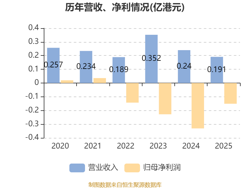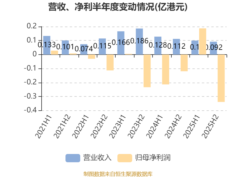 中证智能财讯闽港控股(00181)4月27日披露2025年度报告。报告期内,公司实现营业收入1913.77万港元,同比下降20.36%;归母净利润亏损1512.11万港元,上年同期亏损3310.81万港元;据报告显示,闽港控股基本每股收益为-0.0132港元,平均净资产收益率为-4.47%。