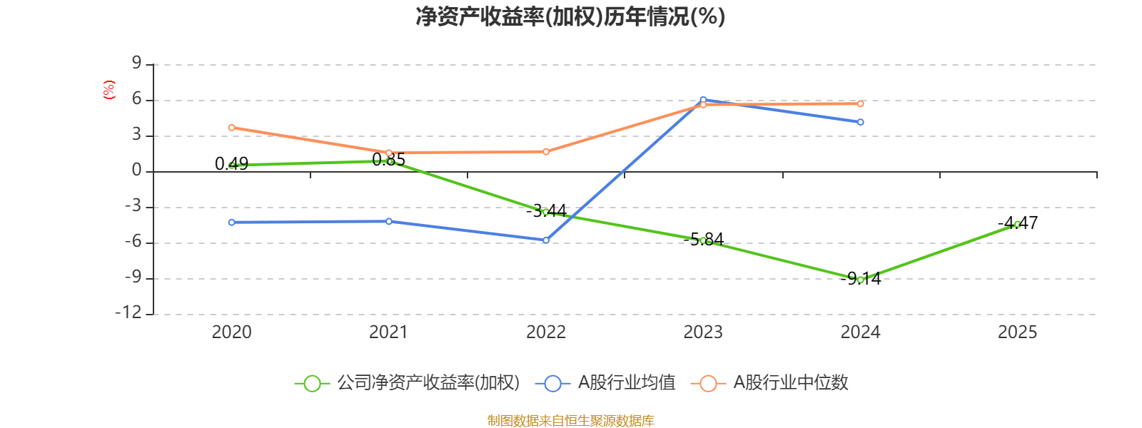 数据显示,2025年公司平均净资产收益率为-4.47%,较上年同期上升4.67个百分点。
