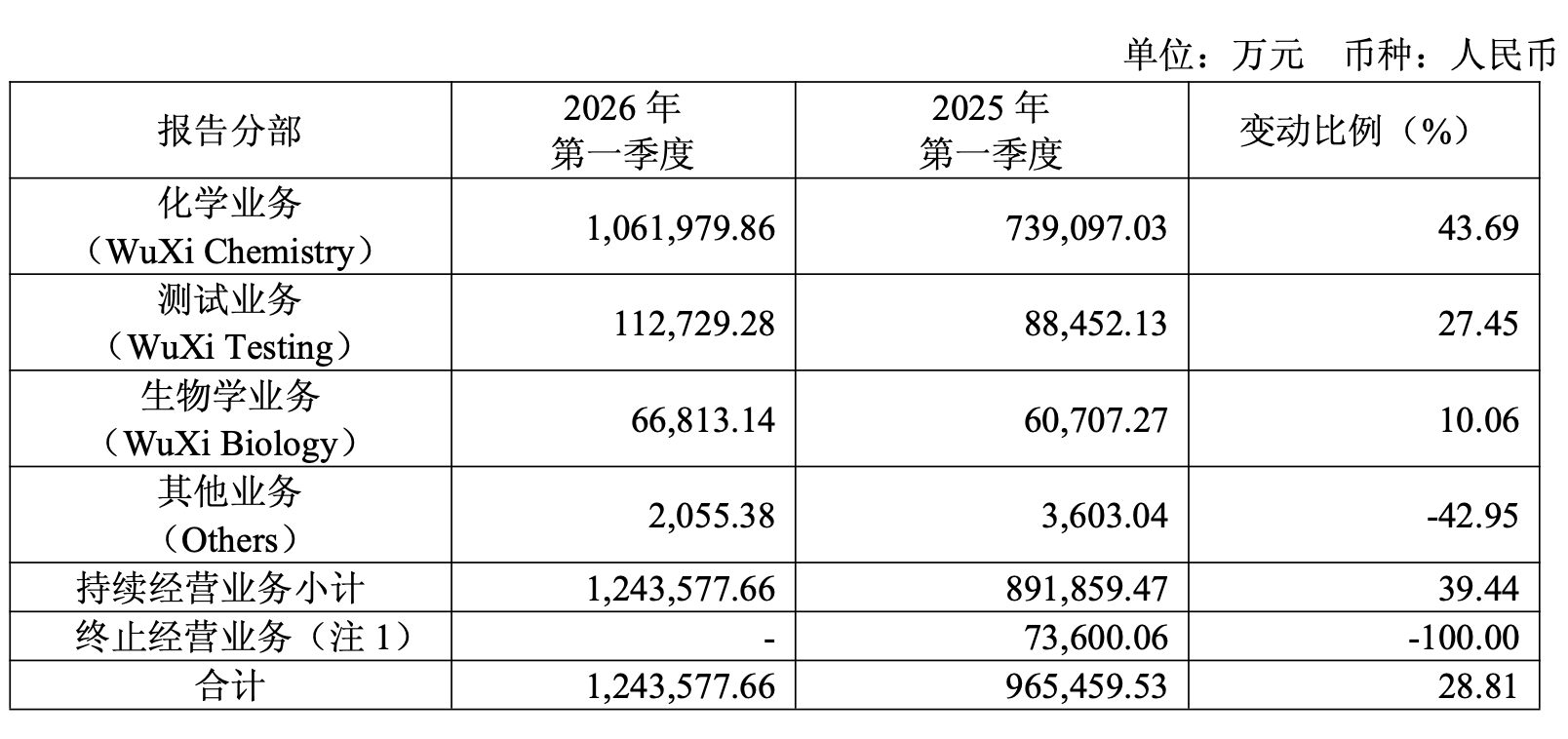 继2025年净利润增速翻番之后,CXO龙头药明康德(603259.SH/02359.HK)今年一季度业绩实现开门红。
