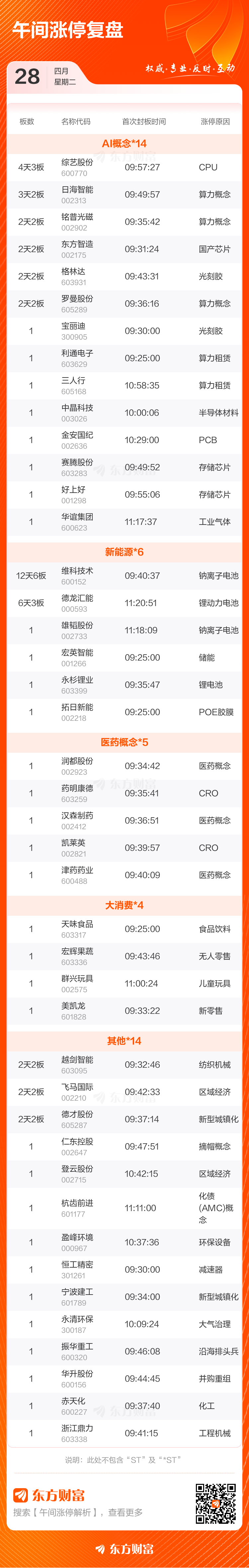 4月28日午间涨停复盘:55股涨停 综艺股份4天3板