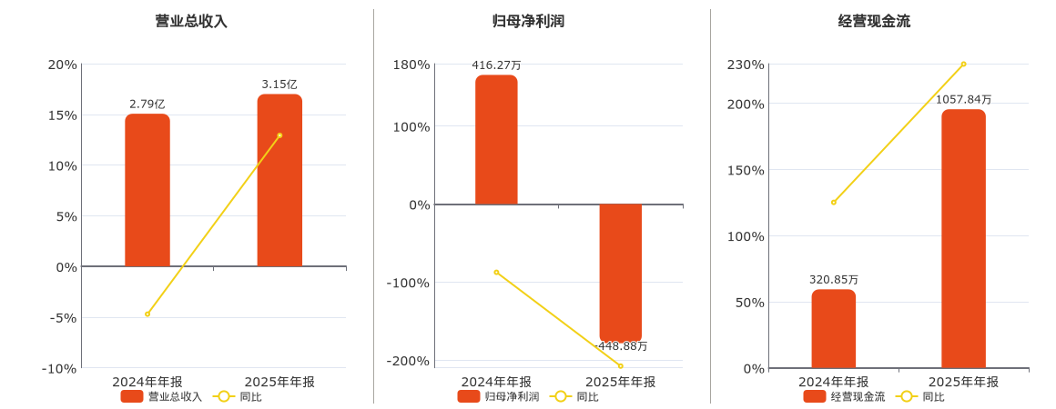 粤万年青(301111.SZ)2025年净利润为-448.88万元,由盈转亏