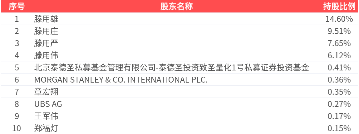 公司股东户数为8.47万户,前十大股东持股数量为2.20亿股,占总股本比例为39.58%,前十大股东持股情况如下: