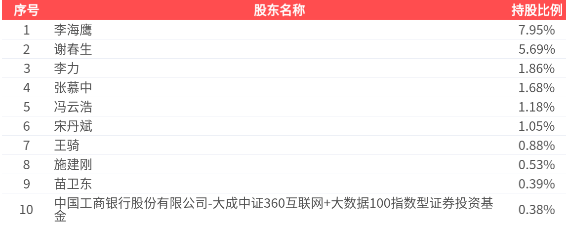 公司股东户数为4.17万户,前十大股东持股数量为8410.58万股,占总股本比例为21.59%,前十大股东持股情况如下: