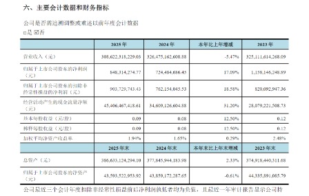 2025年,公司实现营收3086.22亿元,同比下降5.47%;归母净利润8.48亿元,同比增长17.09%。