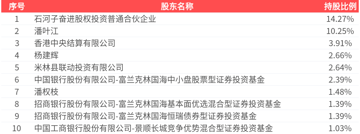 公司股东户数为3.69万户,前十大股东持股数量为3.51亿股,占总股本比例为41.42%,前十大股东持股情况如下: