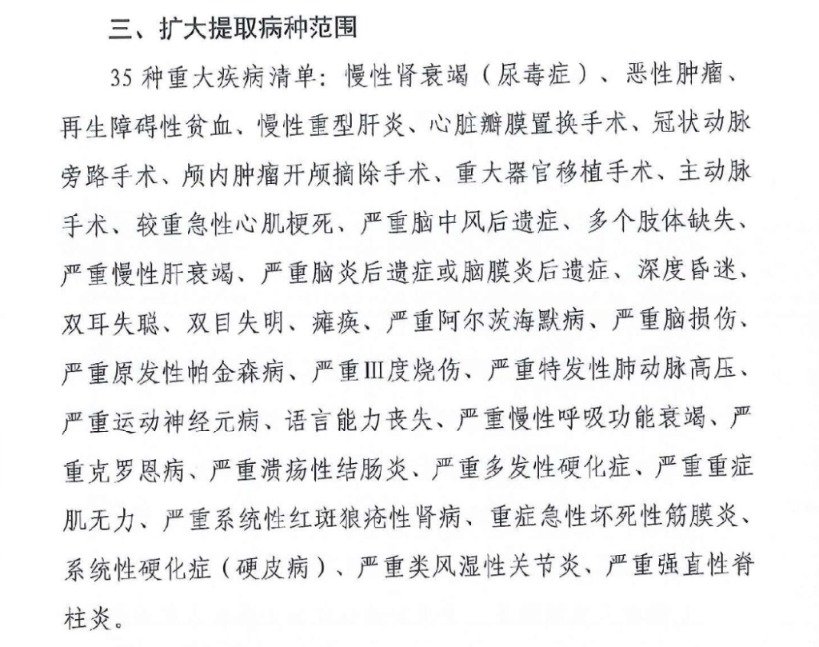 此外,扩大重大疾病提取住房公积金病种范围。缴存人家庭及其父母,子女患重大疾病申请提取住房公积金的,病种由9种扩大至35种。