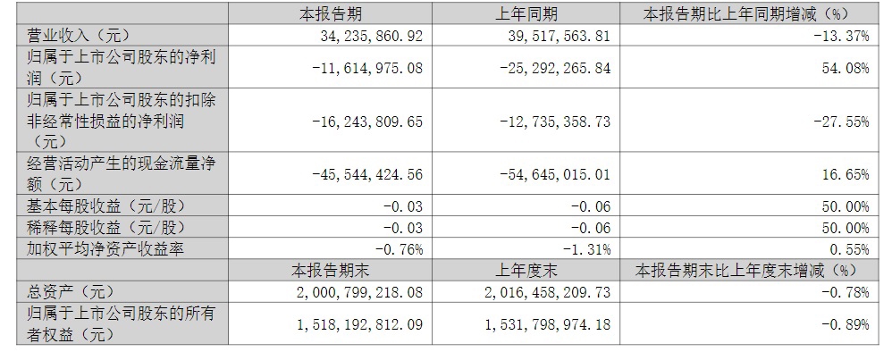 2026年第一季度,金时科技实现营业收入3423.58万元,同比下降13.37%;实现净利润亏损1161.49万元,上年同期亏损2529.22万元。同比减亏54.08%。