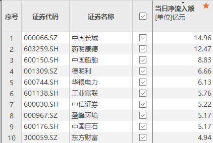资金风向标 | 中国长城、药明康德获大额资金净流入