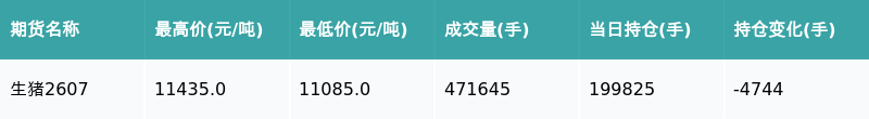 生猪主力合约收涨0.53%