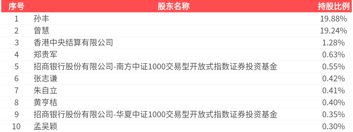 公司股东户数为4.41万户,前十大股东持股数量为1.18亿股,占总股本比例为43.46%,前十大股东持股情况如下: