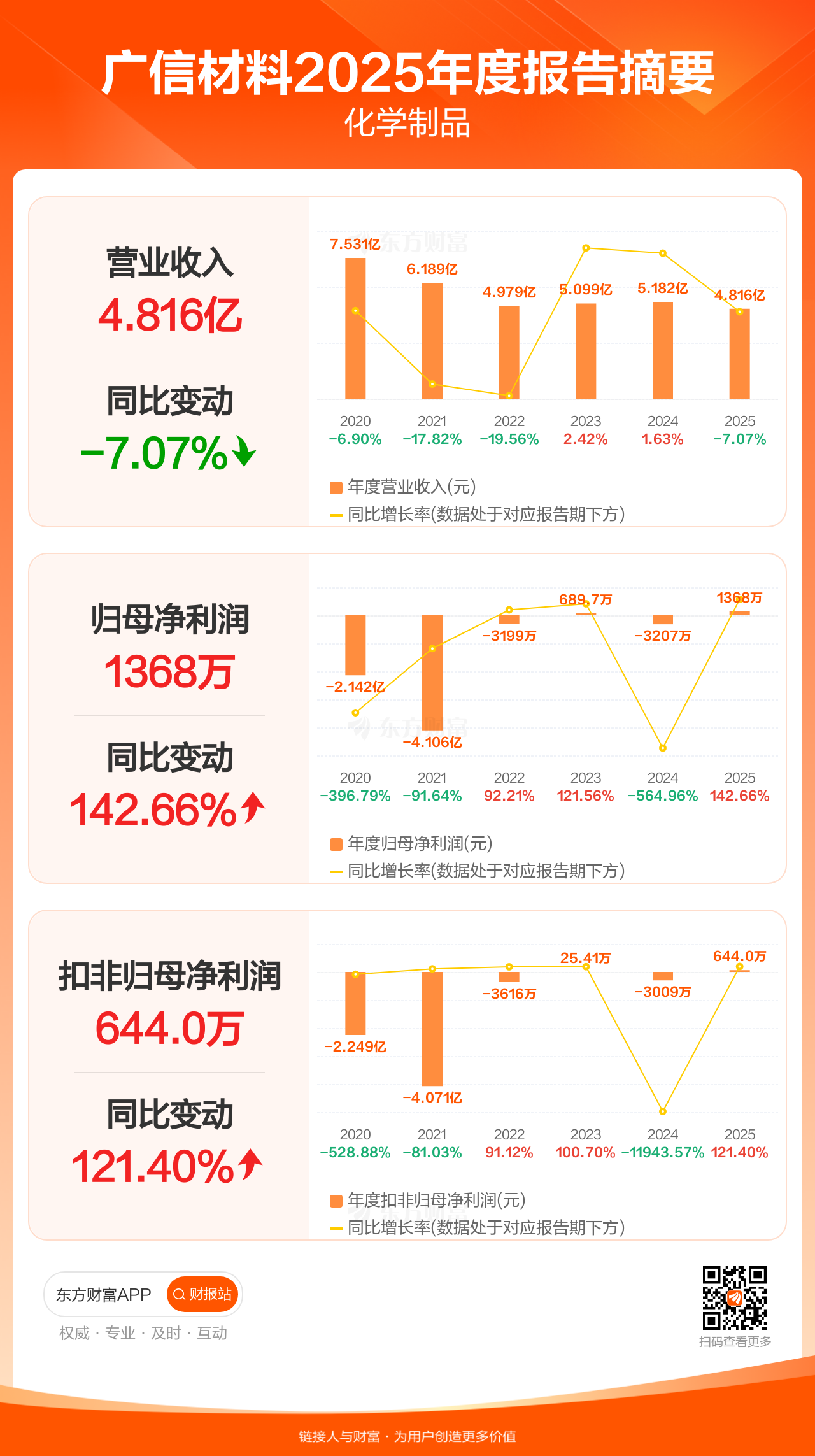 图解财报:广信材料全年归母净利润1368.09万元,同比增长142.66%