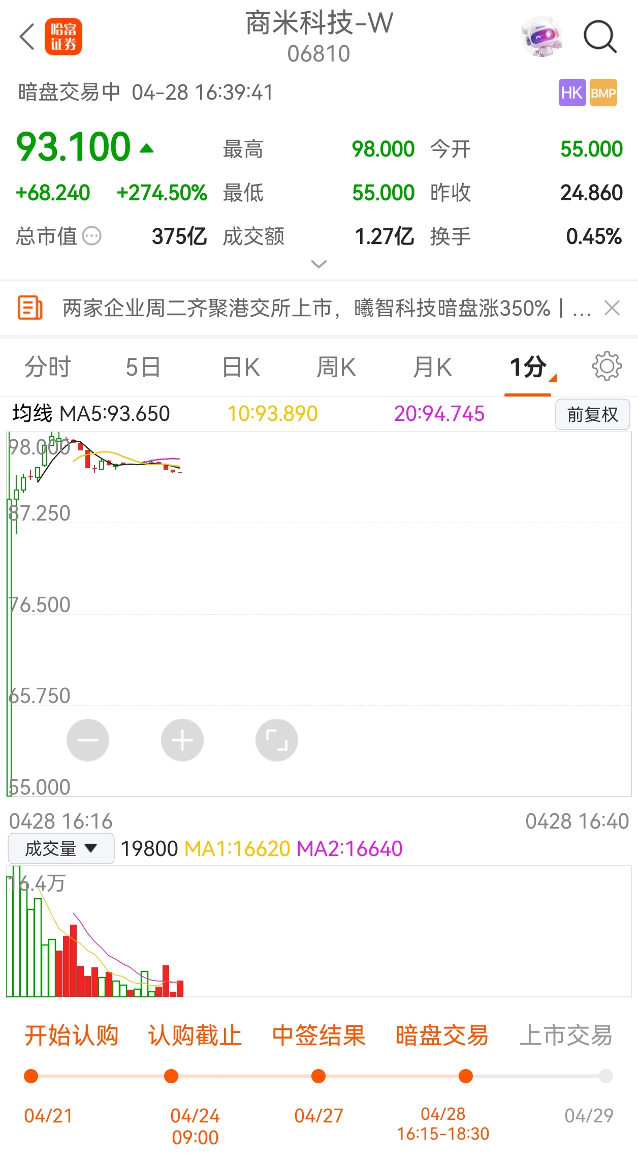 4月28日周二, 商米科技-W 开启暗盘交易,盘初暴涨超275%,不计手续费每手赚超6800港元。商米科技被称为“AI商业物联网第一股”,是中国科技企业从“硬件出海”向“AI生态出海”转型的重要标杆。