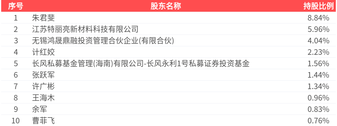 公司股东户数为2.60万户,前十大股东持股数量为5629.04万股,占总股本比例为27.97%,前十大股东持股情况如下: