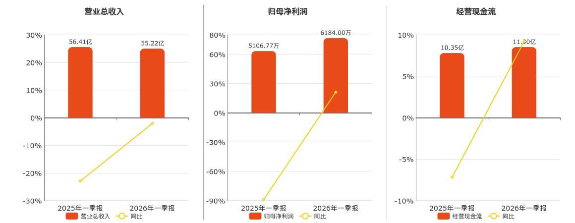 公司营业总收入为55.22亿元,在已披露的同业公司中排名第8。归母净利润为6184.00万元,较去年同报告期归母净利润增加1077.22万元,同比较去年同期上涨21.09%。经营活动现金净流入为11.30亿元,在已披露的同业公司中排名第7,较去年同报告期经营活动现金净流入增加9483.21万元,同比较去年同期上涨9.16%。