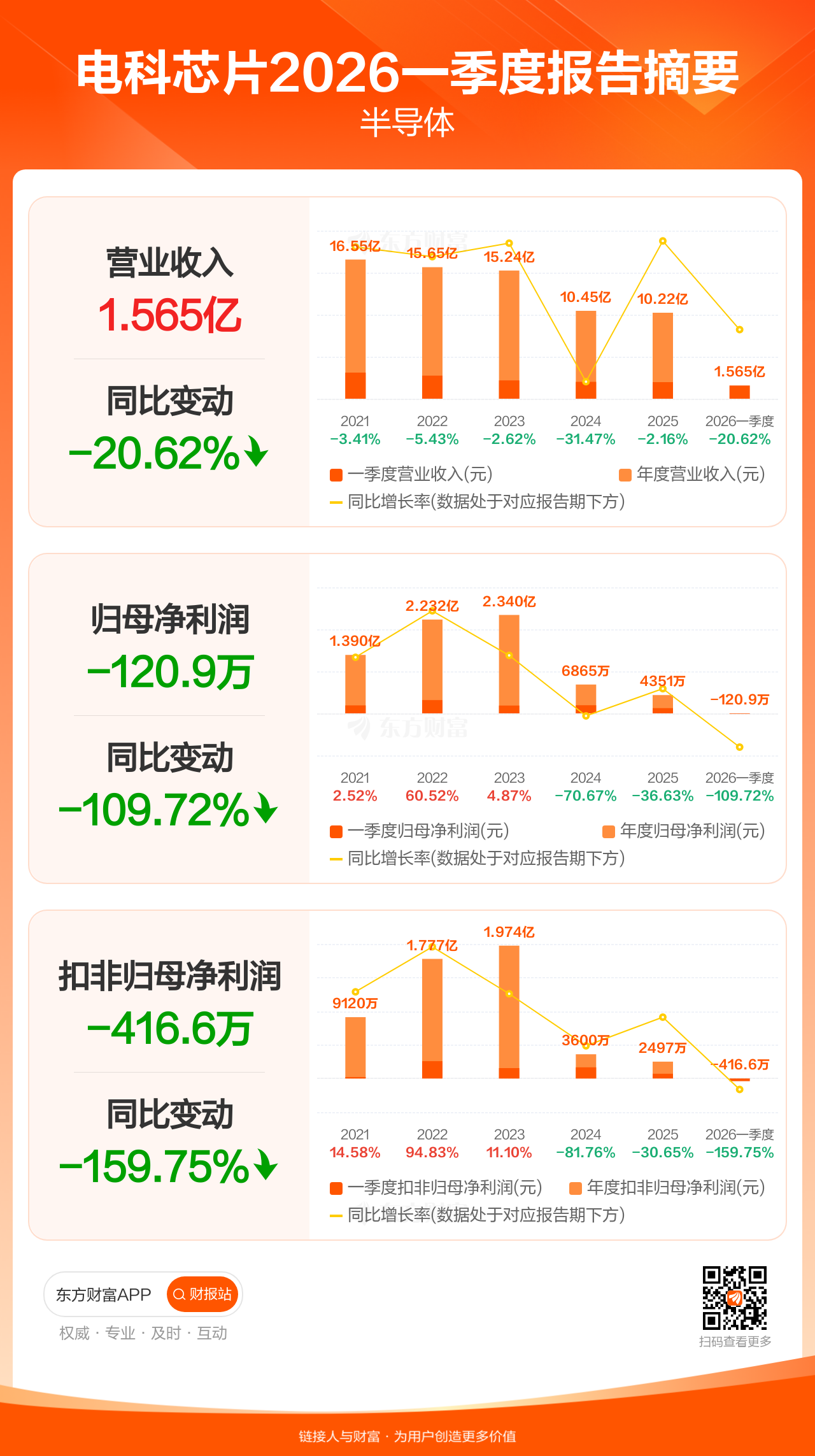 图解财报:电科芯片一季度归母净利润-120.85万元,上年同期1243.86万元
