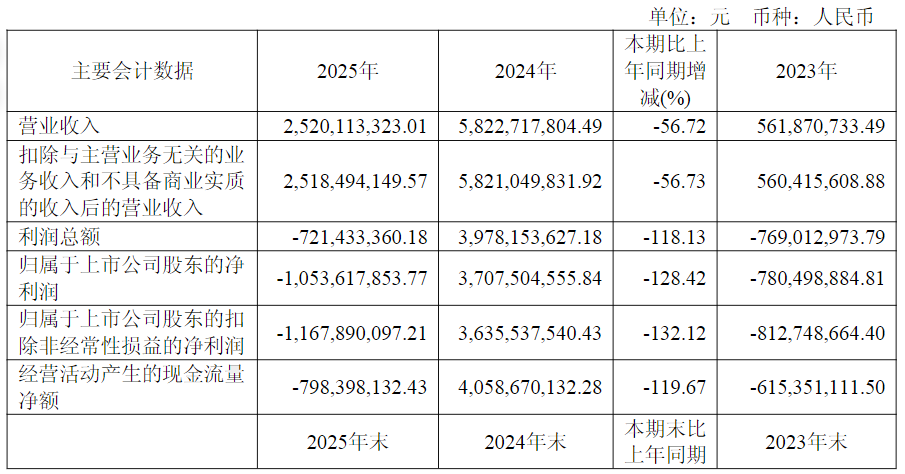 百利天恒年报显示,2025年营业收入为25.20亿元,同比下降56.72%;归母净利润为-10.54亿元,同比下降128.42%;扣非归母净利润为-11.68亿元,同比下降132.12%;基本每股收益-2.61元。