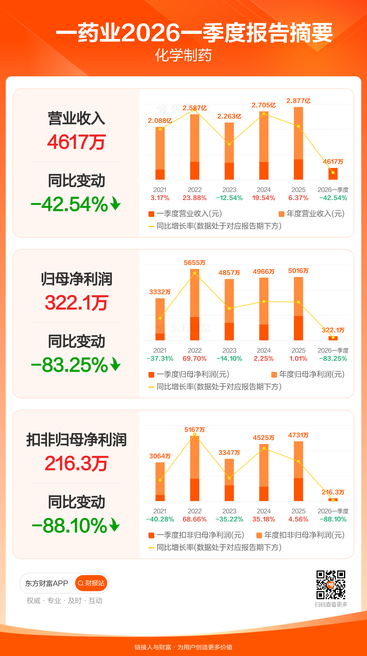 图解财报:峆一药业一季度归母净利润322.15万元,同比减少83.25%