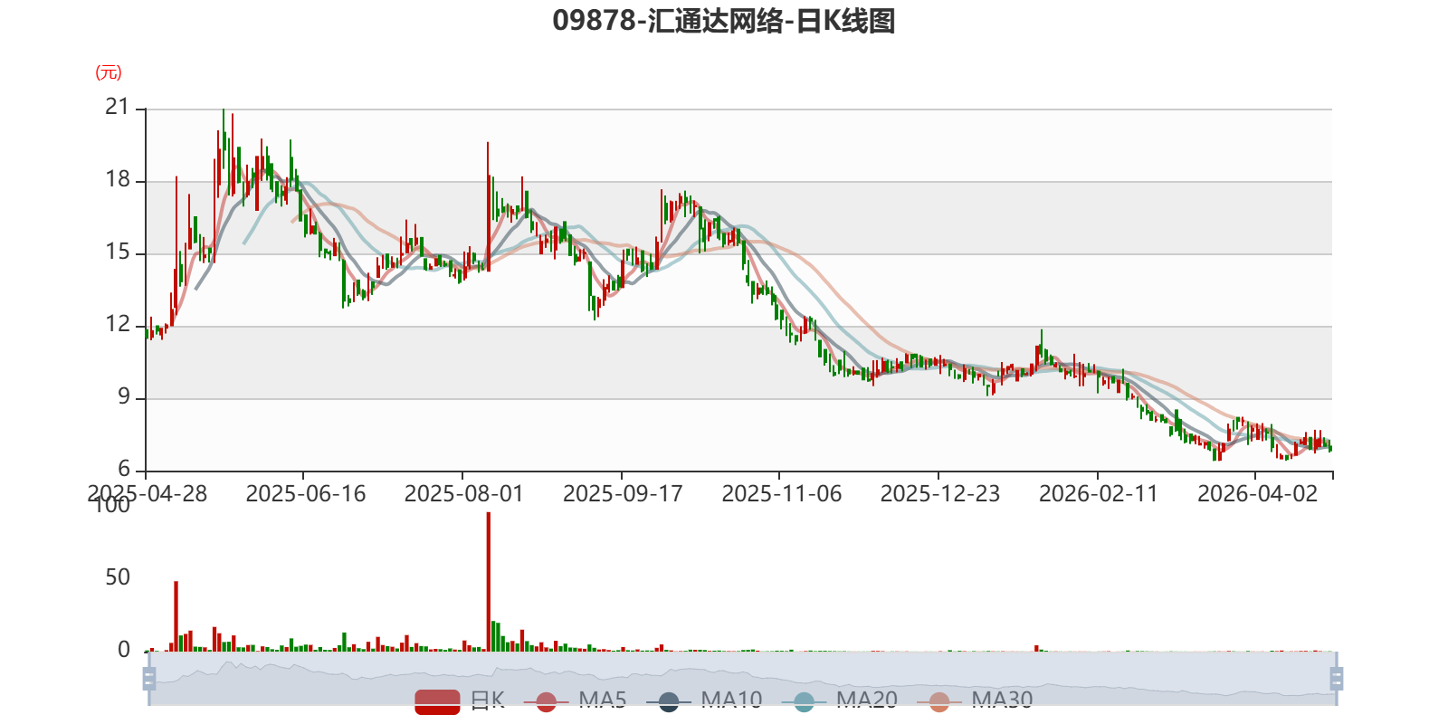 以4月28日收盘价计算,汇通达网络目前市盈率(TTM)约11.55倍,市净率(TTM)约0.43倍,市销率(TTM)约0.07倍。