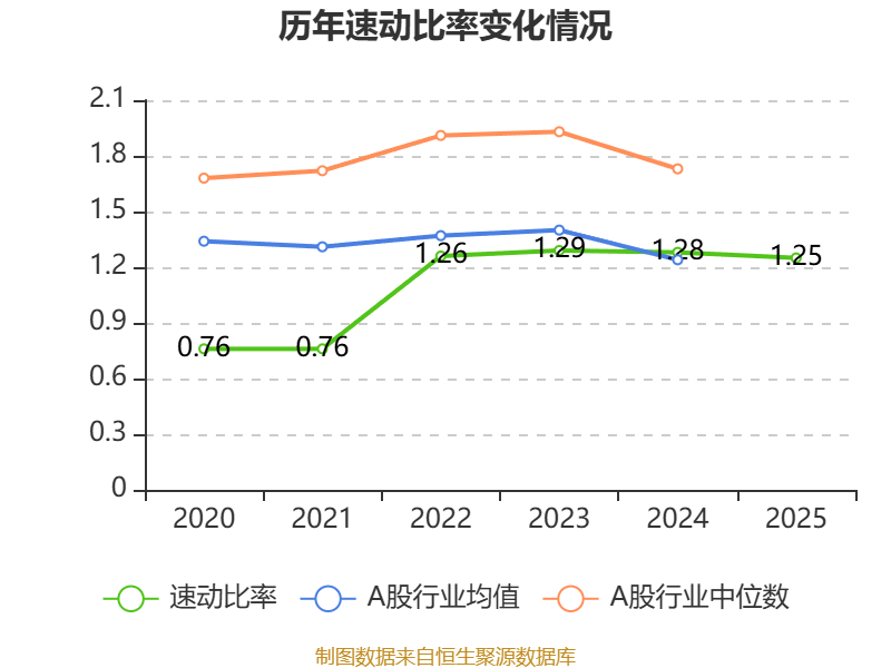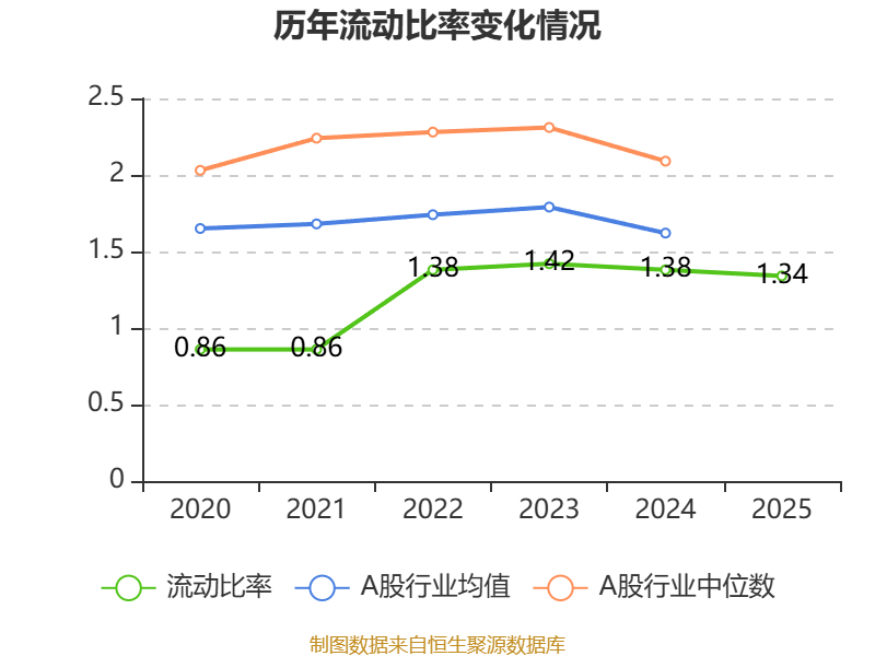 2025年,公司流动比率为1.34,速动比率为1.25。