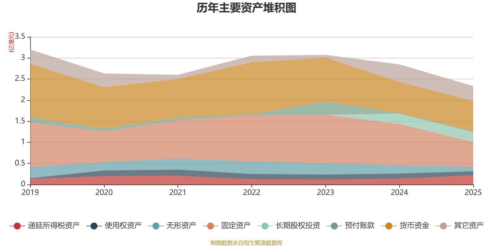 资产重大变化方面,截至2025年末,公司固定资产较上期末减少40.74%,占公司总资产比重下降9.49个百分点;货币资金较上期末减少2.11%,占公司总资产比重上升5.06个百分点;递延所得税资产较上期末增加55.75%,占公司总资产比重上升4.47个百分点;无形资产较上期末减少43.62%,占公司总资产比重下降2.16个百分点。