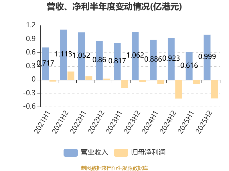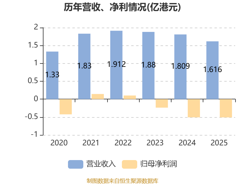 中证智能财讯弘海高新资源(00065)4月28日披露2025年度报告。报告期内,公司实现营业收入1.62亿港元,同比下降10.71%;归母净利润亏损5096.6万港元,上年同期亏损5076.8万港元;经营活动产生的现金流量净额为-1069.8万港元,上年同期为-62万港元;据报告显示,弘海高新资源基本每股收益为-0.2391港元,平均净资产收益率为-40.18%。