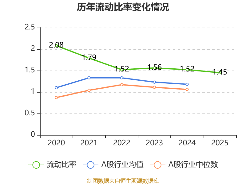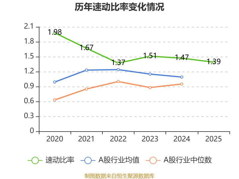 2025年,公司流动比率为1.45,速动比率为1.39。