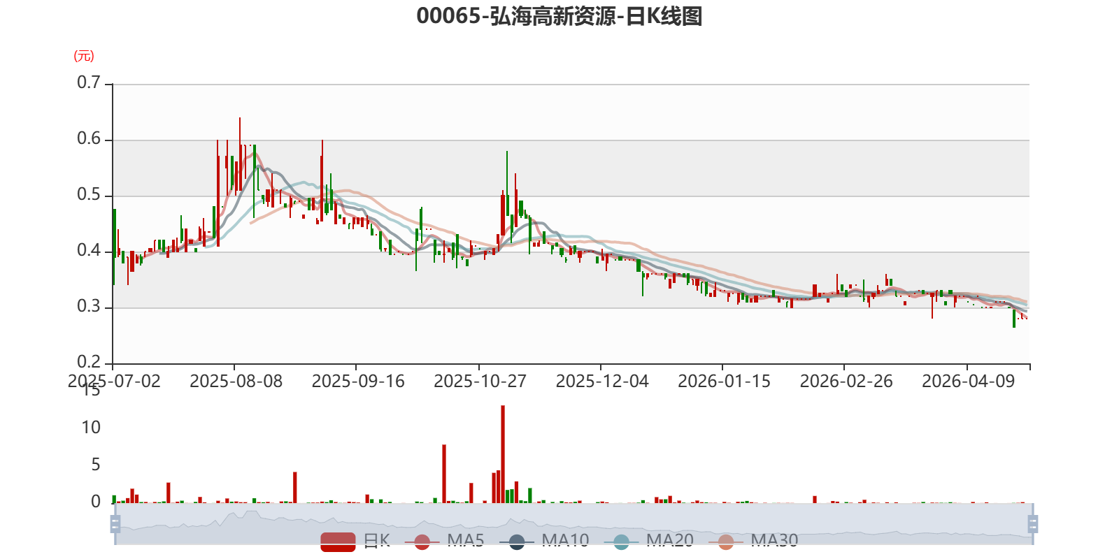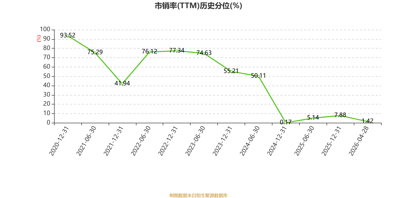 以4月28日收盘价计算,弘海高新资源目前市净率(TTM)约0.63倍,市销率(TTM)约0.43倍。