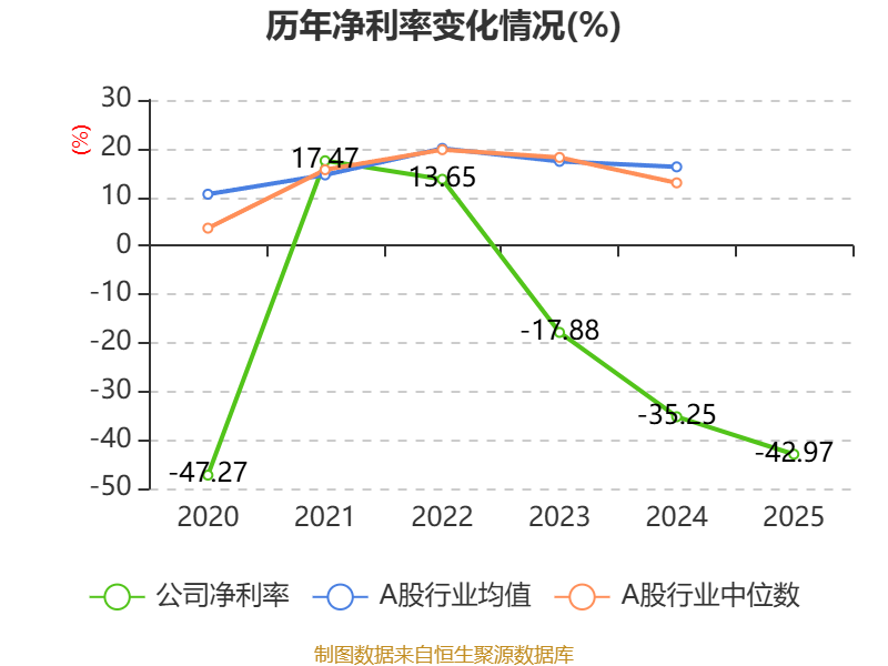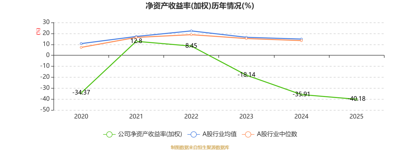 数据显示,2025年公司平均净资产收益率为-40.18%,较上年同期下降4.27个百分点。