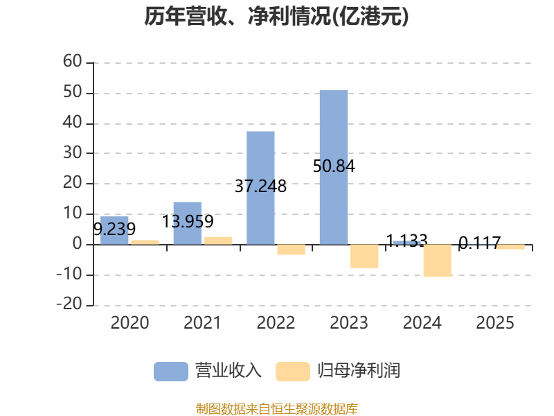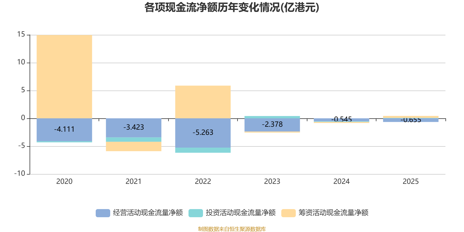 2025年,公司经营活动现金流净额为-6545.8万港元,同比减少1092万港元;筹资活动现金流净额3447.6万港元,同比增加5293.2万港元;投资活动现金流净额809.7万港元,上年同期为-1046.4万港元。