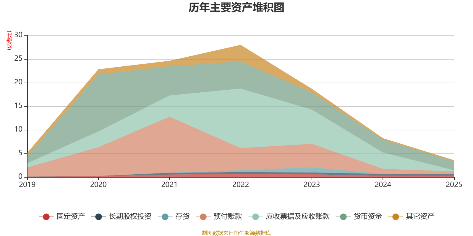 资产重大变化方面,截至2025年末,公司应收票据及应收账款较上期末减少93.35%,占公司总资产比重下降35.65个百分点;货币资金较上期末减少30.87%,占公司总资产比重上升20.01个百分点;长期股权投资较上期末增加5.39%,占公司总资产比重上升6.54个百分点;固定资产较上期末减少0.99%,占公司总资产比重上升4.12个百分点。