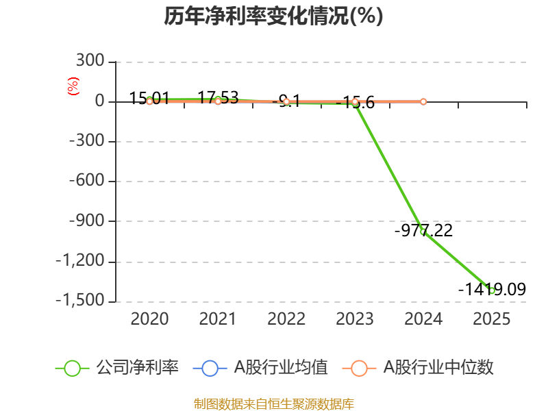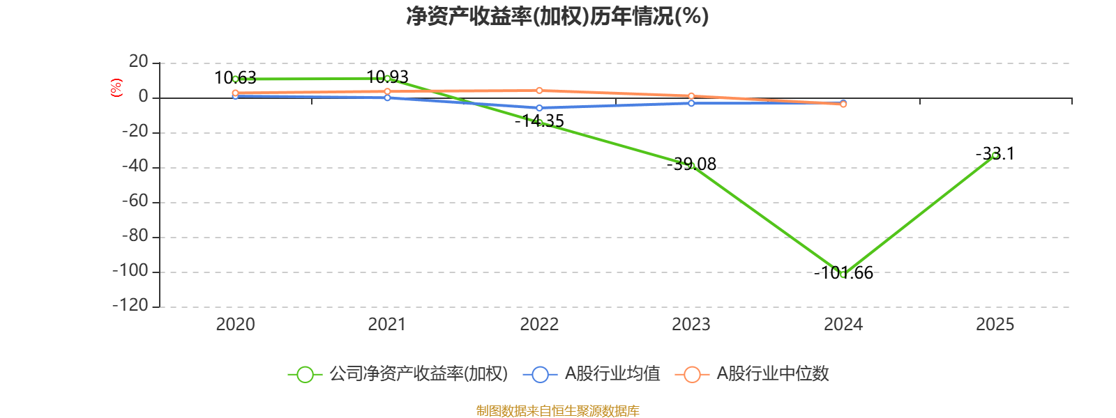 数据显示,2025年公司平均净资产收益率为-33.1%,较上年同期上升68.56个百分点。