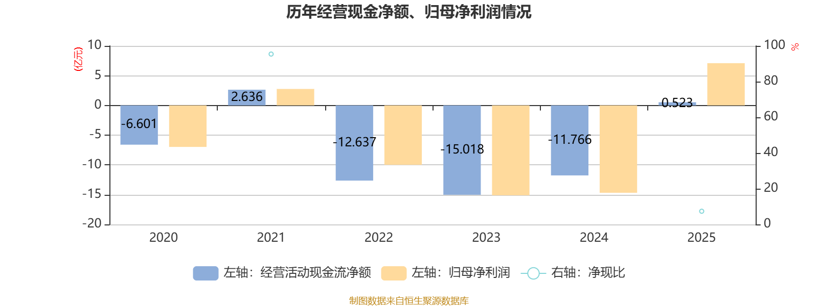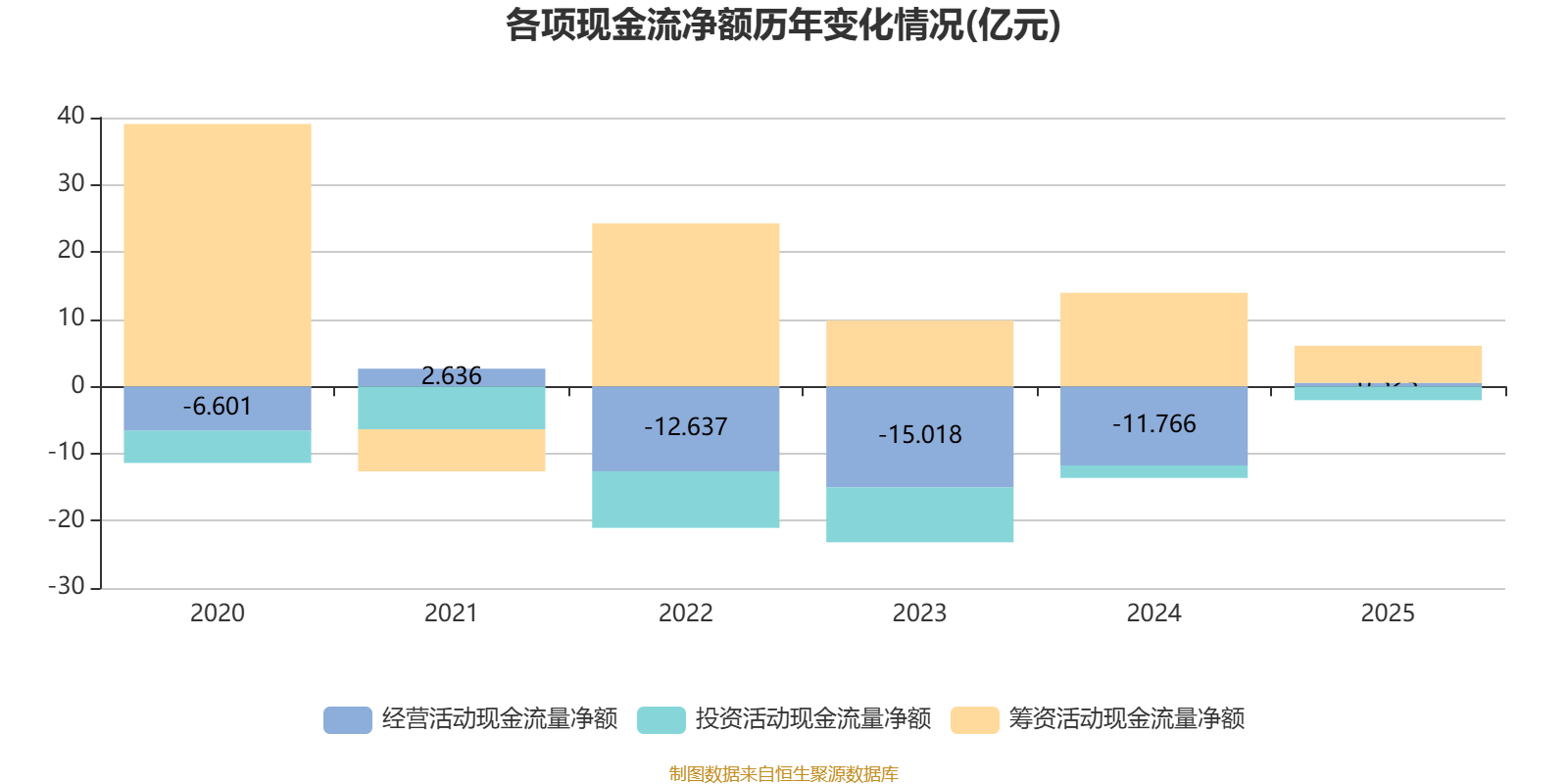 2025年,公司经营活动现金流净额为5234.2万元,同比增加12.29亿元;筹资活动现金流净额5.52亿元,同比减少8.41亿元;投资活动现金流净额-2.05亿元,上年同期为-1.86亿元。