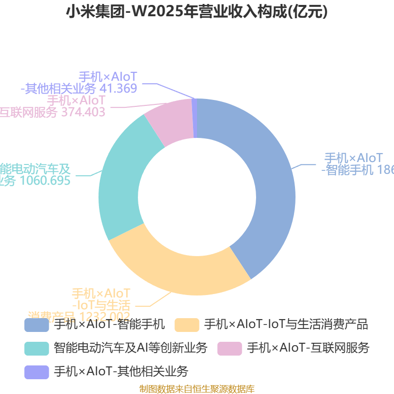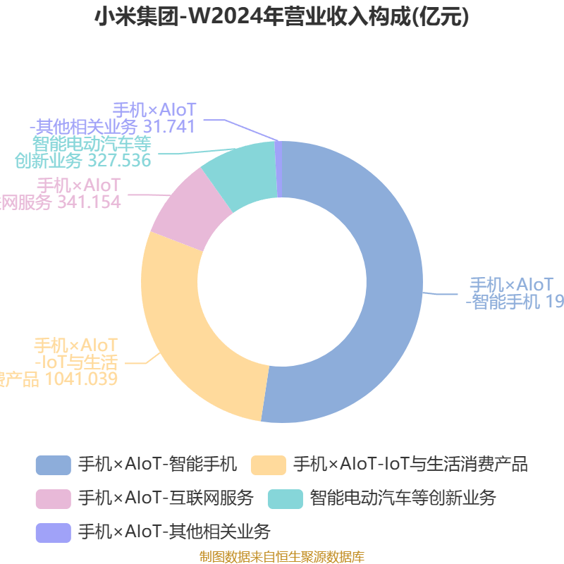 公司主要从事智能手机、物联网(IoT)和生活消费产品研发和销售业务,主要通过四个分部开展业务。智能手机分部智能手机销售业务;IoT和生活消费产品分部主要销售其他自家产品(包括智能电视机、笔记本电脑、人工智能(AI)音箱和智能路由器)、生态链产品(包括IoT和其他智能硬件产品)以及部分生活消费产品;互联网服务分部提供广告服务及网络游戏与金融科技业务等互联网增值服务;其他分部提供硬件产品维修服务等。此外 ,公司还从事智能电动汽车及其他相关业务。