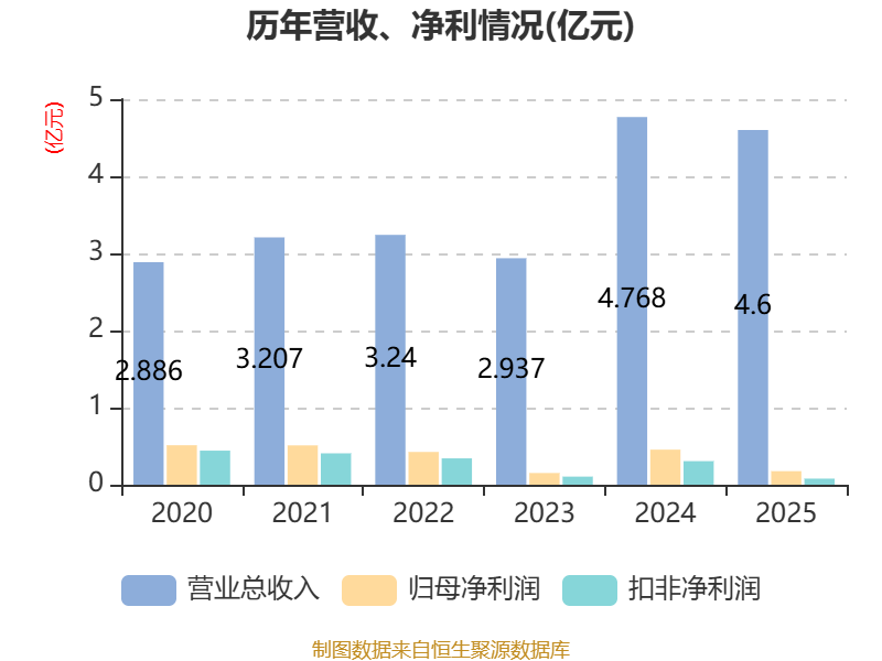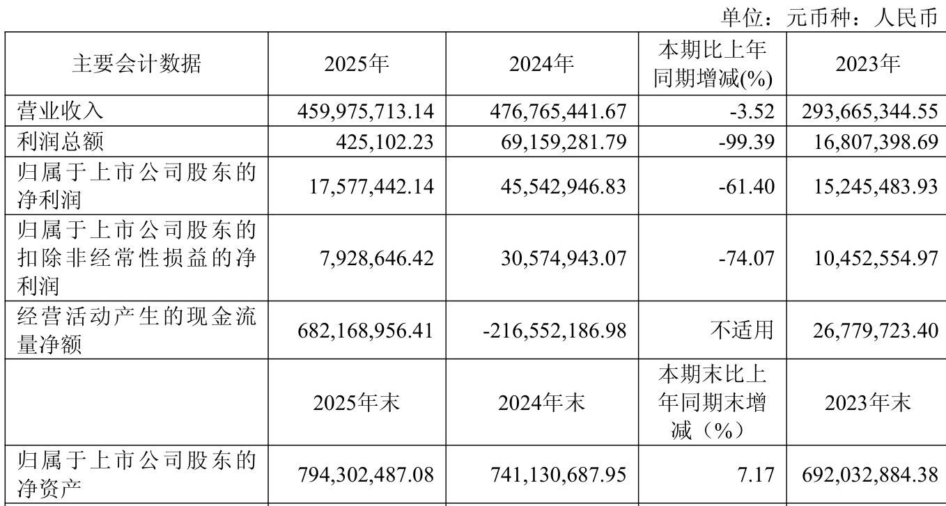 中证智能财讯迈信林(688685)4月29日披露2025年年度报告。2025年,公司实现营业总收入4.6亿元,同比下降3.52%;归母净利润1757.74万元,同比下降61.40%;扣非净利润792.86万元,同比下降74.07%;经营活动产生的现金流量净额为6.82亿元,上年同期为-2.17亿元;报告期内,迈信林基本每股收益为0.12元,加权平均净资产收益率为2.31%。公司2025年度分配预案为:拟向全体股东每10股派现0.45元(含税)。