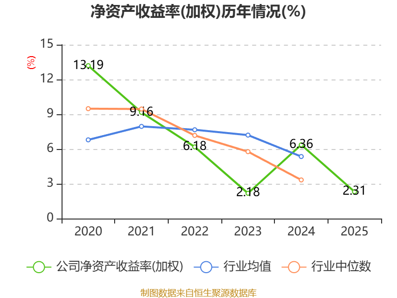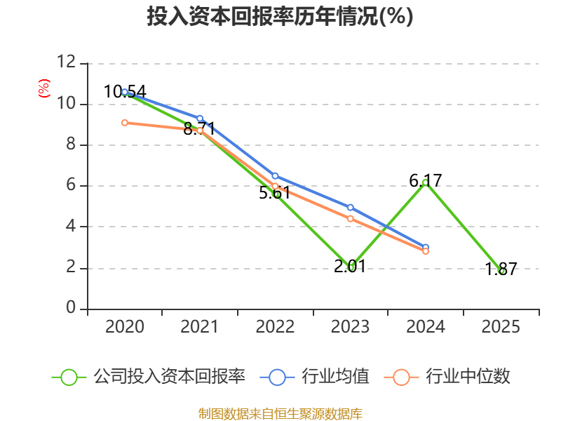数据显示,2025年公司加权平均净资产收益率为2.31%,较上年同期下降4.05个百分点。公司2025年投入资本回报率为1.87%,较上年同期下降4.3个百分点。