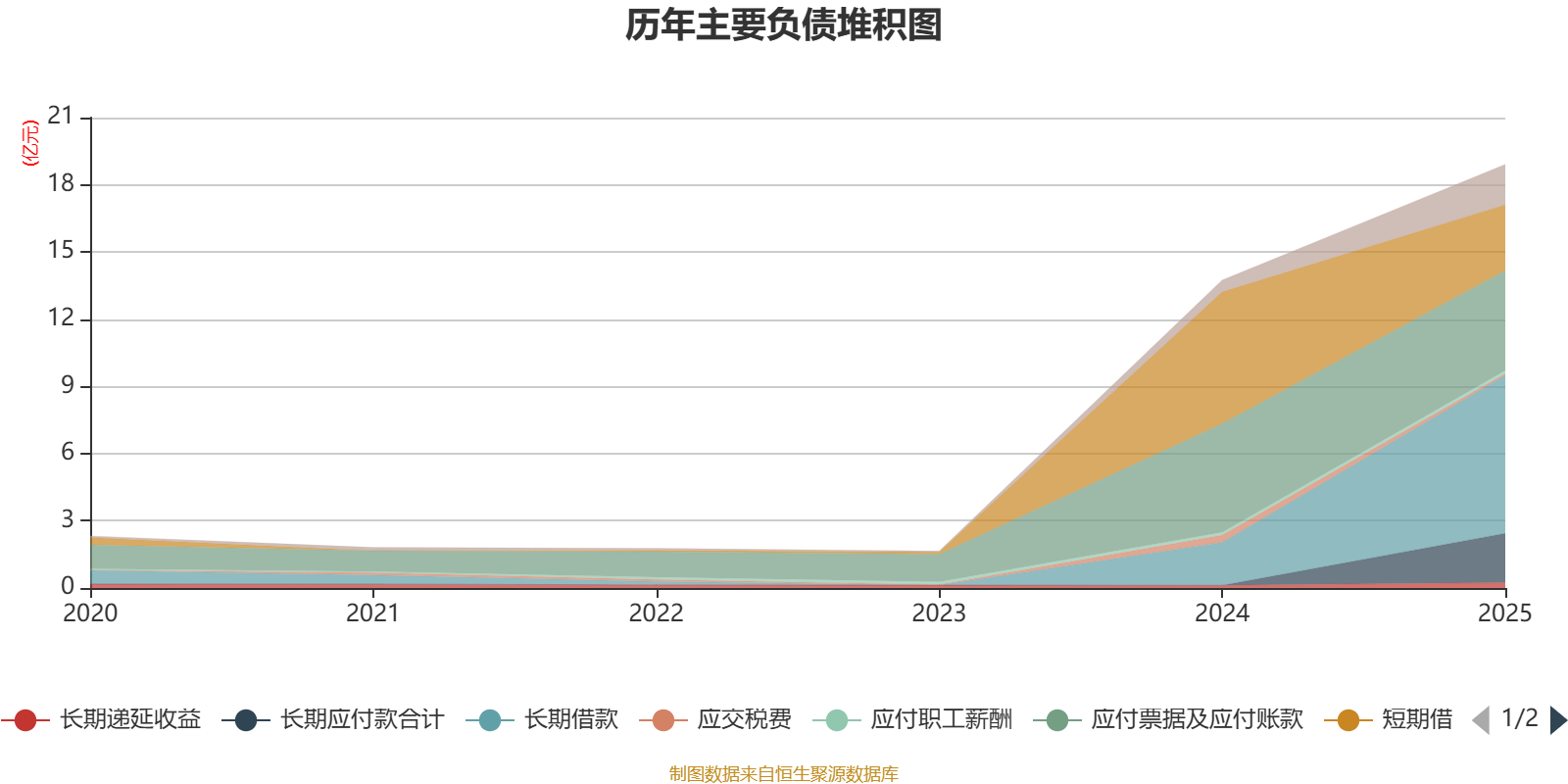 负债重大变化方面,截至2025年末,公司长期借款较上年末增加267.42%,占公司总资产比重上升16.77个百分点;短期借款较上年末减少50.19%,占公司总资产比重下降16.42个百分点;长期应付款合计占公司总资产的8%,上年末为0;应付票据及应付账款较上年末减少7.84%,占公司总资产比重下降6.08个百分点。