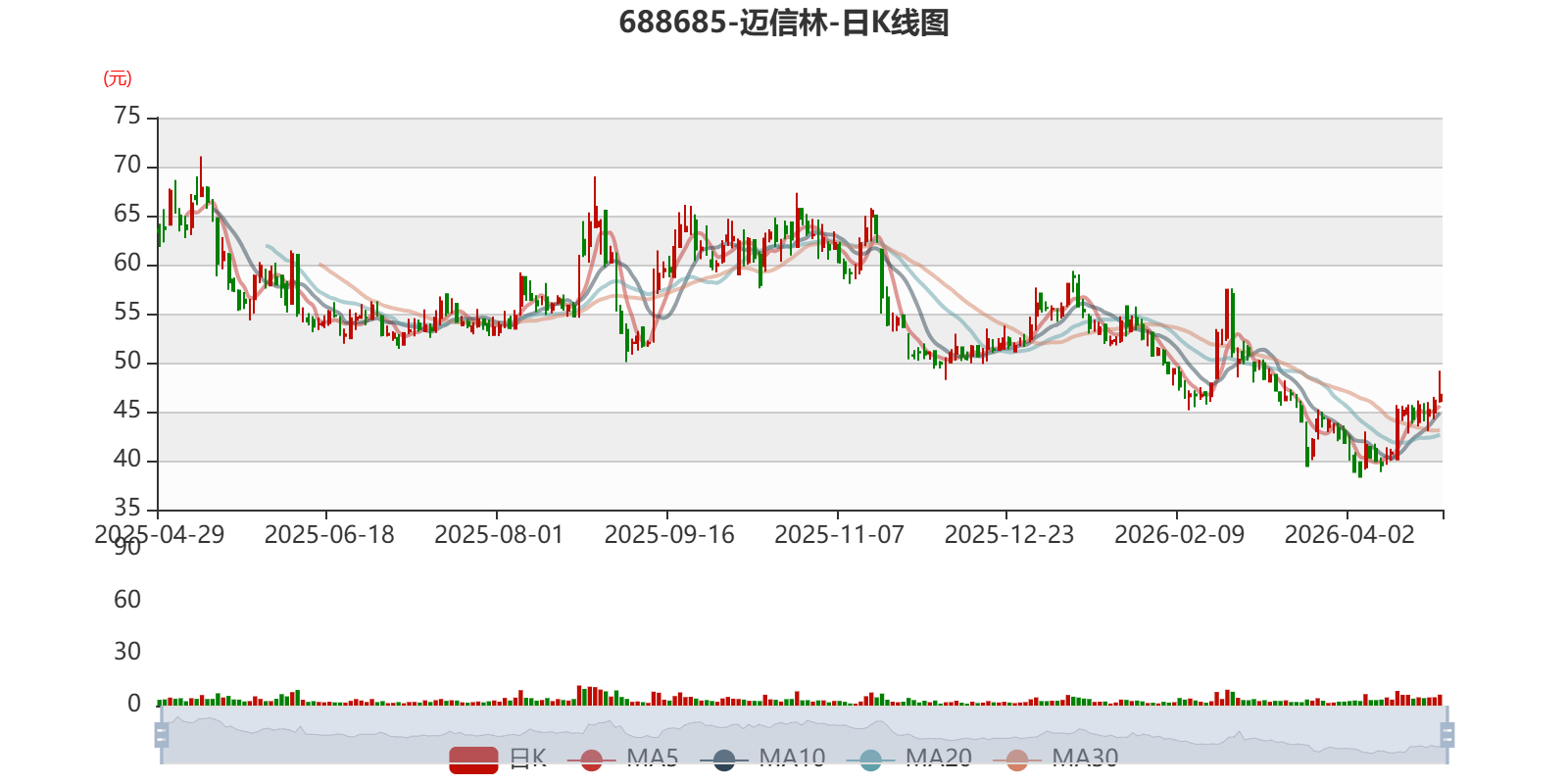 以4月28日收盘价计算,迈信林目前市盈率(TTM)约为390.41倍,市净率(LF)约8.64倍,市销率(TTM)约14.92倍。