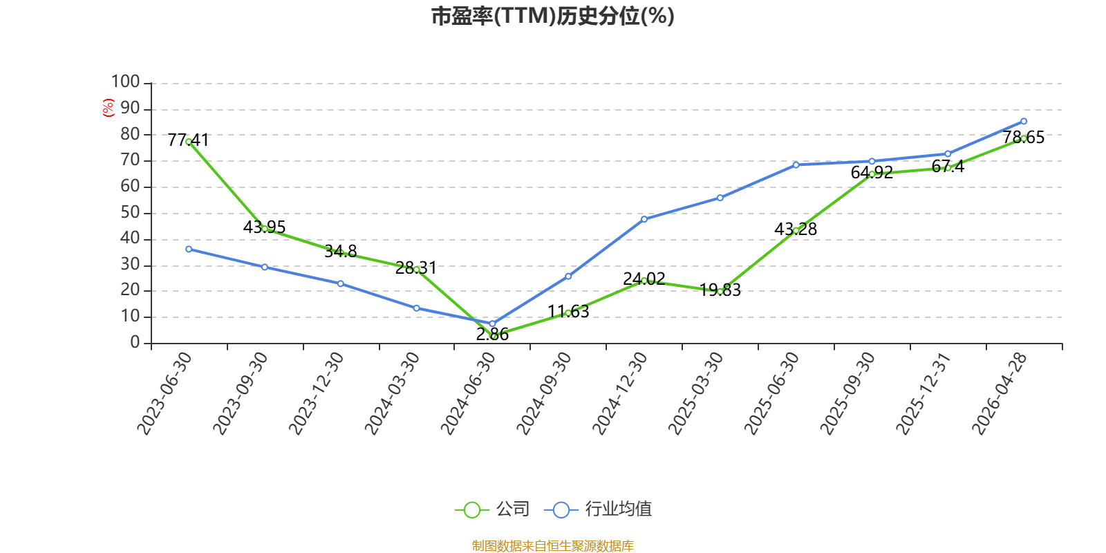 市盈率、市净率为负时,不显示当期分位数,会导致折线图中断。