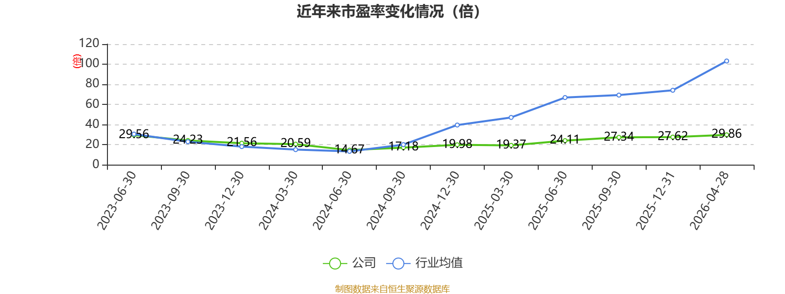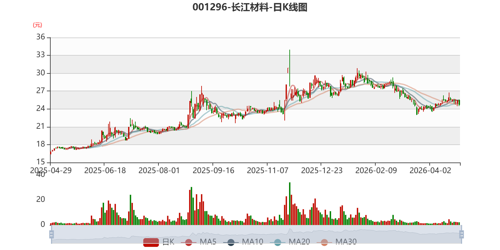 以4月28日收盘价计算,长江材料目前市盈率(TTM)约为29.86倍,市净率(LF)约2.07倍,市销率(TTM)约3.18倍。