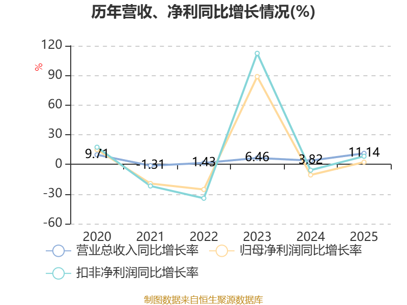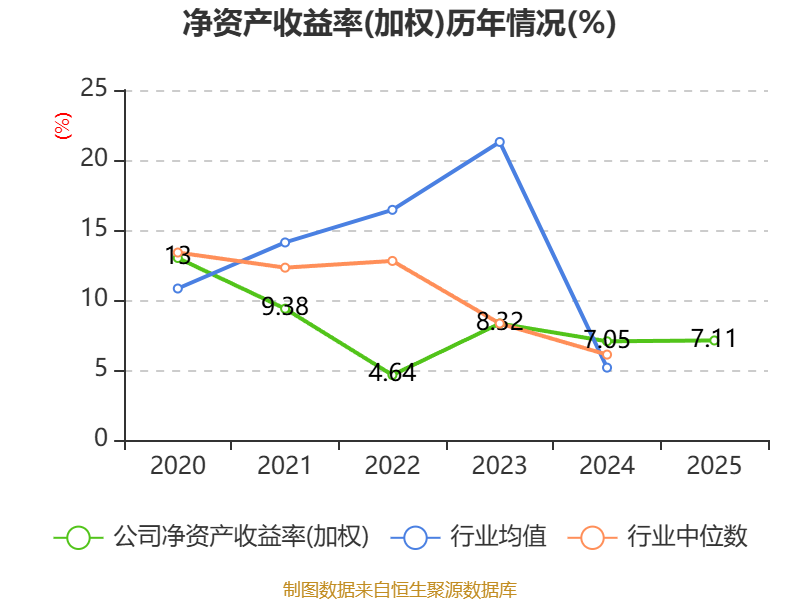 数据显示,2025年公司加权平均净资产收益率为7.11%,较上年同期上升0.06个百分点。公司2025年投入资本回报率为6.41%,较上年同期下降0.19个百分点。
