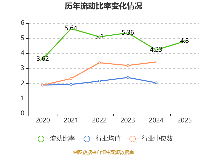 2025年,公司流动比率为4.8,速动比率为4.02。