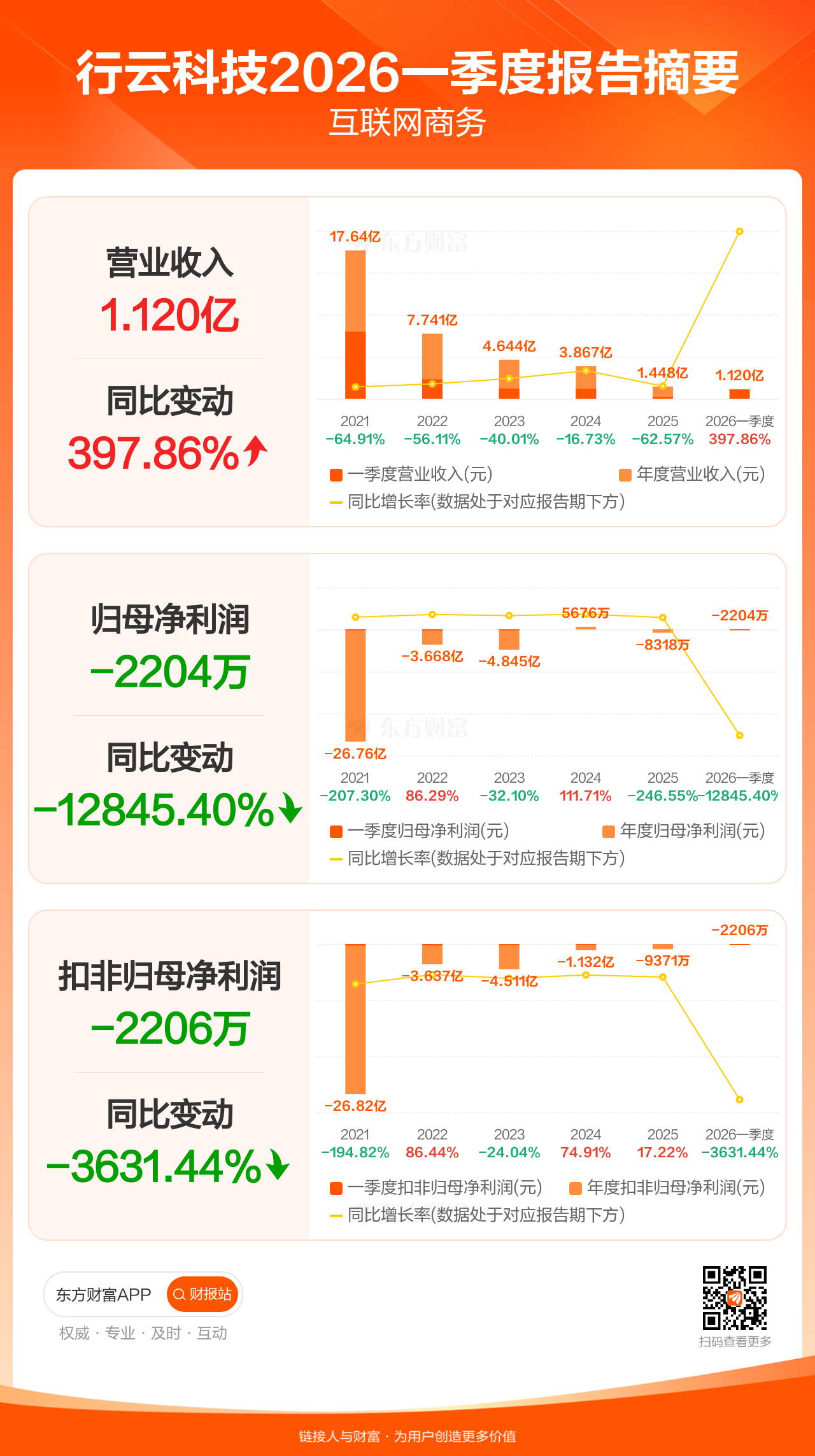 图解财报:行云科技一季度归母净利润-2203.64万元,上年同期17.29万元