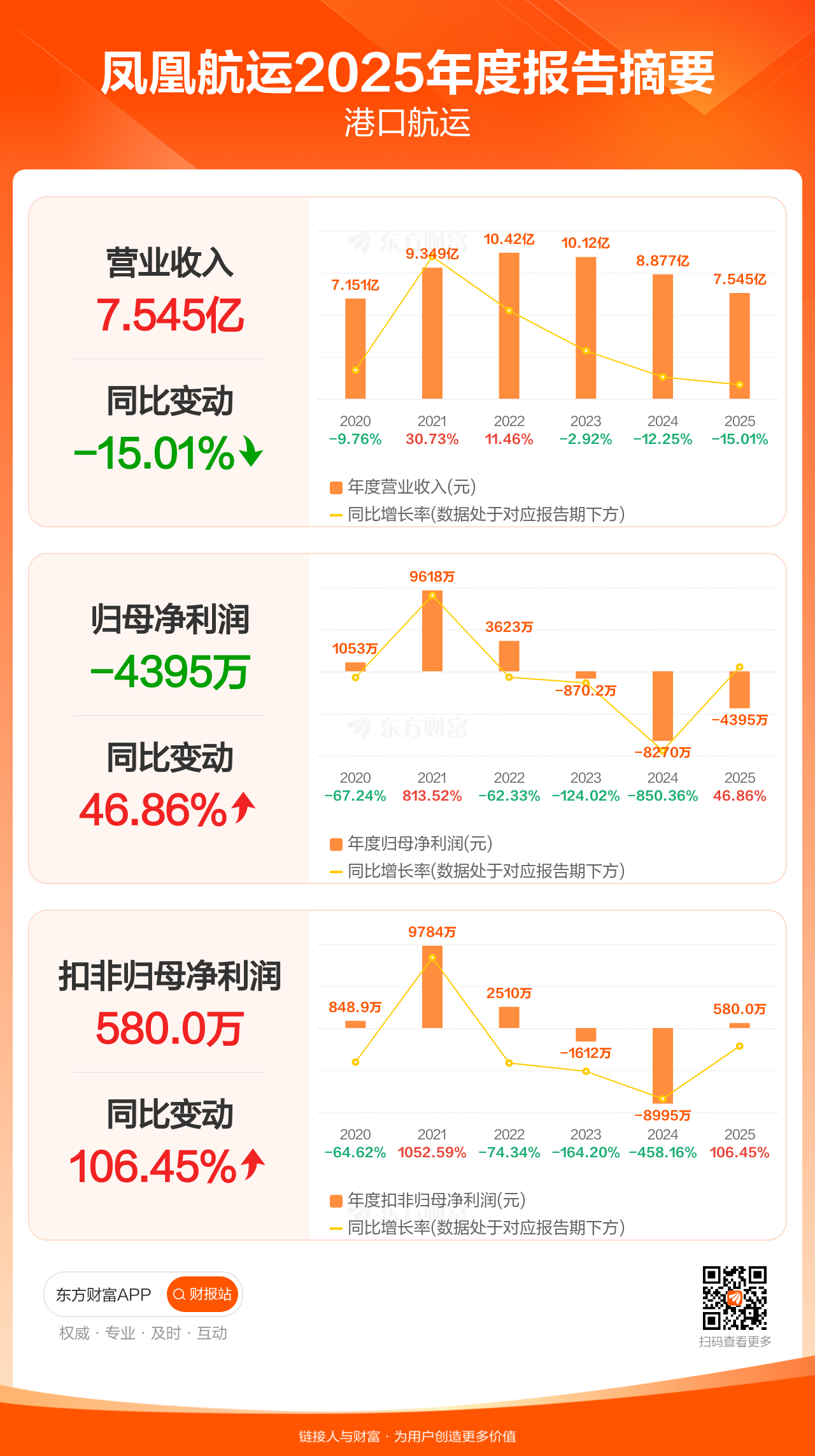 图解财报:凤凰航运全年归母净利润-4394.55万元,上年同期-8270.19万元
