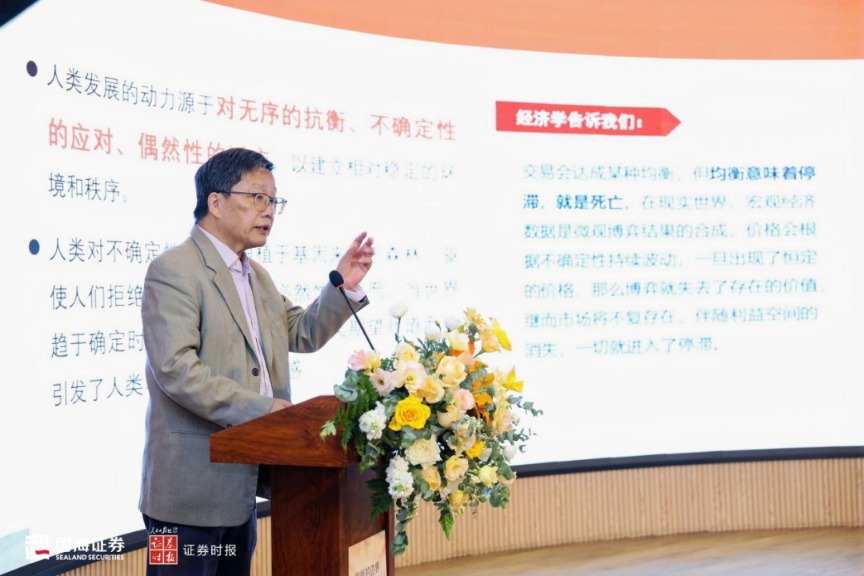 中国行为法学会副会长、中信集团原监事长、中信银行原行长朱小黄在演讲中指出,不确定性的本质是“时间轴上不可知的未来”,它是世界的底色和本质特征。在他看来,所谓经济周期并无精密的规则,历史经验也无法线性外推至未来。