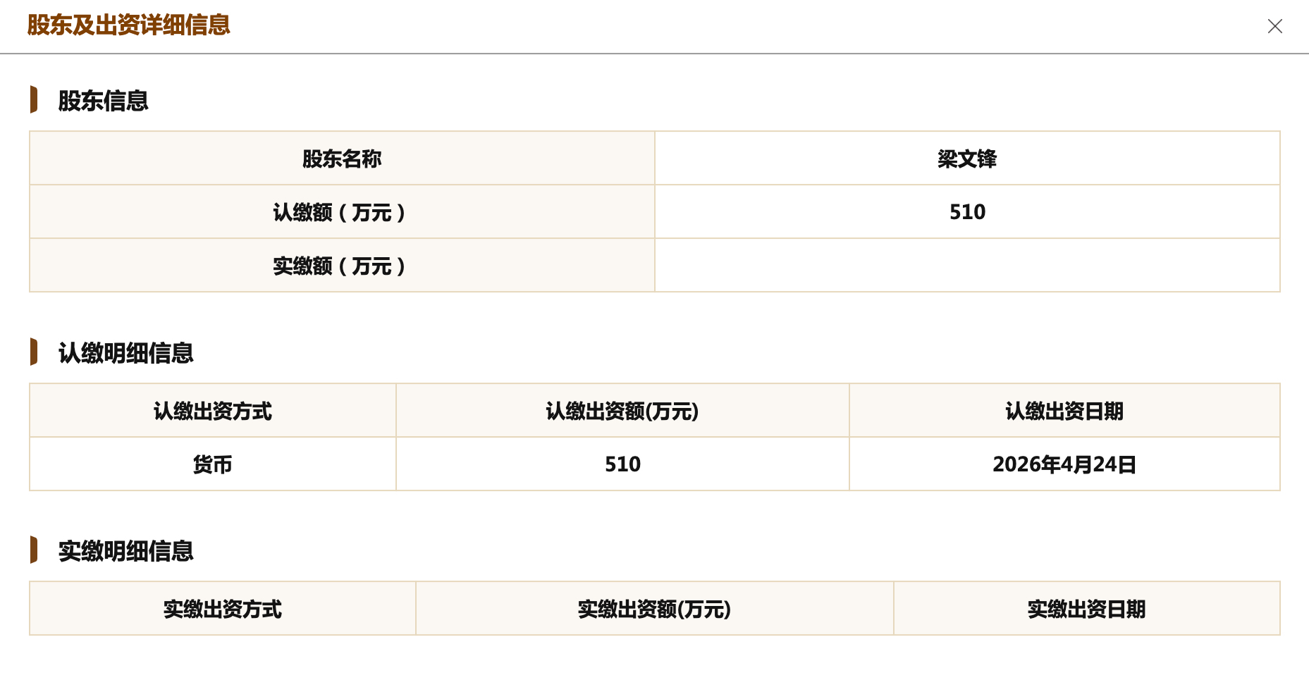 国家企业信用信息公示系统显示,目前,梁文锋认缴出资额为510万元,认缴出资日期为2026年4月24日。宁波程恩企业管理咨询合伙企业(有限合伙)认缴出资额为990万元,认缴出资日期为2023年8月15日。